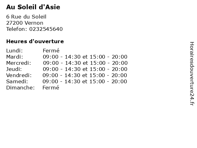 | Mardi | 09:00-14:30 et 15:00-20:00 |
