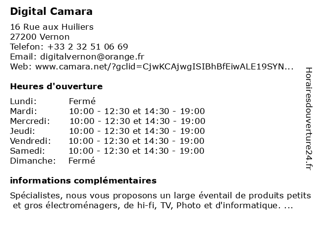 | Samedi | 10:00-12:30 et 14:30-19:00 |