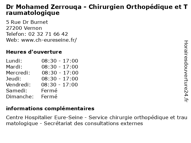 1 Dr Christophe Benez - Chirurgien Orthopédique et Traumatologique (Distance: 0,00 km) 5 Rue Dr Burnet, 27200 Vernon benez, chirurgien, christophe, dr, et, orthopedie, orthopédique, trauma, traumatologie, traumatologique 2 Dr Jean-Claude Borel - Chirurgien Orthopédique et Traumatologique (Distance: 0,00 km) 5 Rue Dr Burnet, 27200 Vernon borel, chirurgien, claude, dr, et, jean, orthopedie, orthopédique, trauma, traumatologie, traumatologique 3 Dr Robert Montarnal - Chirurgien Orthopédique et Traumatologique (Distance: 0,00 km) 5 Rue Dr Burnet, 27200 Vernon chirurgien, dr, et, montarnal, orthopedie, orthopédique, robert, trauma, traumatologie, traumatologique 4 Dr Abdulrahman Siress - Chirurgien Orthopédique et Traumatologique (Distance: 0,00 km) 5 Rue Dr Burnet, 27200 Vernon abdulrahman, chirurgien, dr, et, orthopedie, orthopédique, siress, trauma, traumatologie, traumatologique 5 Dr Mohamed Abdelaziz Halalchi - Ophtalmologue (Distance: 17,10 km) - boulevard Sully, 78200 Mantes-la-Jolie abdelaziz, consultation, docteur, dr, halalchi, med, mohamed, médecin, ophtalmologue, traitement 6 |