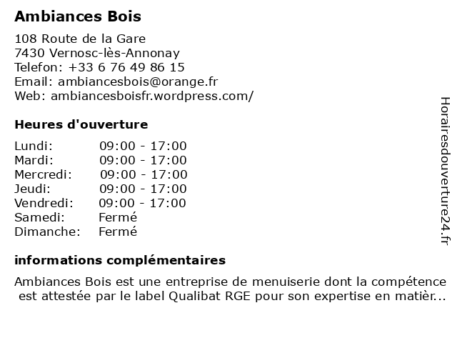 | Samedi | Fermé |