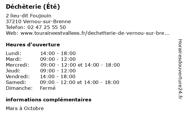 1 Déchèterie (Été) (Distance: 5,64 km) - chemin du passage d'Amont, 37270 Montlouis-sur-Loire bennes, débarras, déchèterie, détritus, ordures, été 2 Déchèterie (Été) (Distance: 16,23 km) 26 rue du Commandant Jacques-Yves Cousteau, 37150 Bléré bennes, débarras, déchèterie, détritus, ordures, été 3 Déchèterie (Été) (Distance: 17,28 km) - lieu-dit La Pommeraye, 37320 Esvres-sur-Indre bennes, débarras, déchèterie, détritus, ordures, été 4 Déchèterie (Été) (Distance: 19,15 km) - Zi du Bois Joli, 37310 Tauxigny bennes, débarras, déchèterie, détritus, ordures, été 5 Déchèterie (Hiver) (Distance: 0,00 km) 2 lieu-dit Foujouin, 37210 Vernou-sur-Brenne bennes, débarras, déchèterie, détritus, hiver, ordures 6 Touraine Escalade - Hors été (Distance: 10,32 km) 31 rue des Grands Mortiers, 37700 Saint-Pierre-des-Corps escalade, hors, salle, touraine, été |