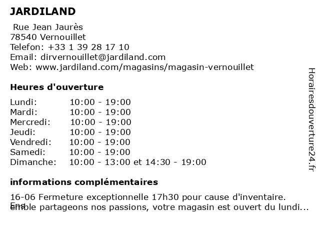 1 JARDILAND (Distance: 9,16 km) D14, 78410 Flins-sur-Seine aménagement du jardin, animaux de compagnie, art de la table, barbecue cuisine d'extérieur, bassin, bougies et senteurs, décoration d'intérieur, entretien et soin des végétaux, equipement du jardinier, espace librairie, fleuristerie, jardiland, loisir plein air, materiel et bricolage, mobilier de jardin, plantes d'intérieur, pots et contenants, semences et bulbes, végétaux d'extérieur 2 Jardiland (Distance: 12,77 km) 1 chemin du Poirier Charles Guerin, 95520 Osny animalerie, jardiland, jardin 3 Jardiland (Distance: 15,11 km) Boulevard du Parisis, 95240 Cormeilles-en-Parisis abris de jardin, aménagement du jardin, animaux de compagnie, barbecue, bassin, décoration d'intérieur, jardiland, luminaires, mobilier de jardin, pots et contenants, pépinière, semences et bulbes, végétaux d'extérieur, équipement du jardinier 4 Jardiland - de Mars à juin et de octobre à décembre (Distance: 10,09 km) n/a Route de marines, 95520 Osny cosmetics, de, décembre, et, garden design, garden mineral, home decoration, jardiland, juin, mars, octobre, outdoors, scents, seed 5 Jardiland - de Janvier à février et de juillet à septembre. (Distance: 10,09 km) n/a Route de marines, 95520 Osny cosmetics, de, et, février, garden design, garden mineral, home decoration, janvier, jardiland, juillet, outdoors, scents, seed, septembre. 6 Triel Tennis De Table (Distance: 1,74 km) 61 Rue de Chanteloup, 78510 Triel-sur-Seine club, de, sport, table, tennis, triel, triel-sur-seine |