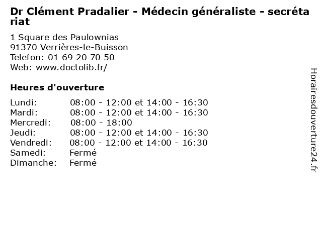 | Mardi | 08:00-12:00 et 14:00-16:30 |
