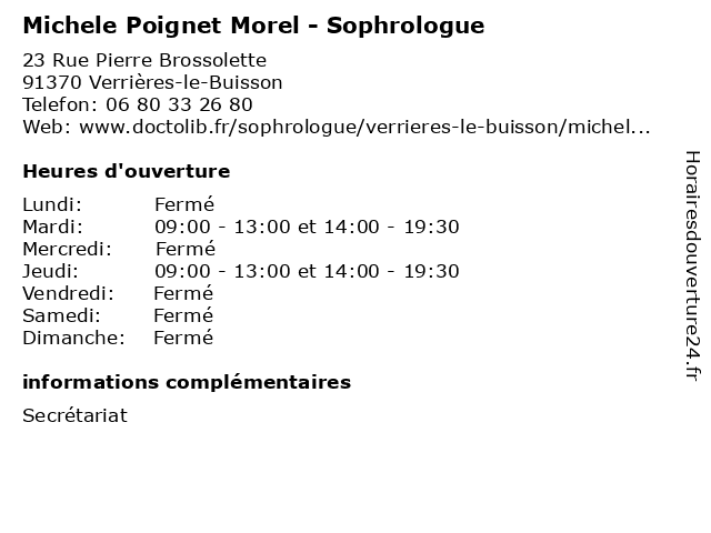 1 Claire Hauss - Sophrologue (Distance: 0,16 km) 56 Boulevard du Maréchal Foch, 91370 Verrières-le-Buisson claire, hauss, sante, soins, sophrologie, sophrologue 2 Justine Bach - Sophrologue (Distance: 0,82 km) 211 Rue Adolphe Pajeaud, 92160 Antony bach, justine, sante, soins, sophrologie, sophrologue 3 Sylvie Vialle - Sophrologue (Distance: 1,28 km) 86 Rue Adolphe Pajeaud, 92160 Antony consultation, docteur, med, médecin, médecine, sophrologue, sylvie, traitement, vialle 4 Carole Plissonnier - Sophrologue (Distance: 1,49 km) 80 Avenue François Molé, 92160 Antony carole, medecin, plissonnier, sante, sophro, sophrologue 5 Maud Ferventoux - Sophrologue (Distance: 1,79 km) 7 Rue Victor Basch, 91300 Massy ferventoux, maud, medecin, sante, sophro, sophrologue 6 Hélène Armary - Sophrologue (Distance: 2,87 km) 44 Avenue Rabelais, 92160 Antony armary, consultant, hélène, sophrologie, sophrologue, thérapies |