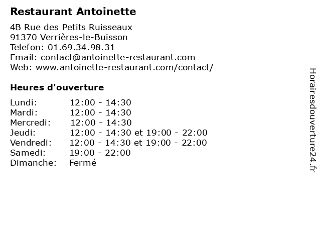 | Jeudi | 12:00-14:30 et 19:00-22:00 |