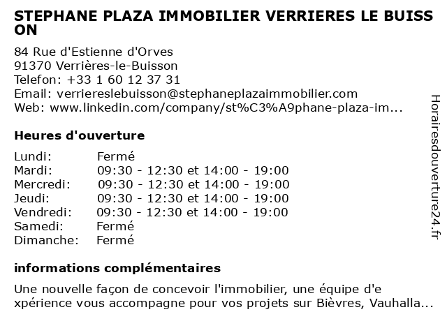 | Mercredi | 09:30-12:30 et 14:00-19:00 |