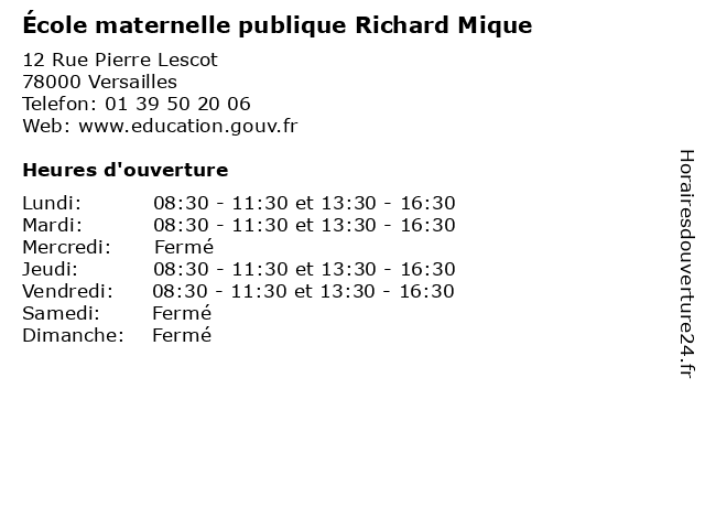 | Mardi | 08:30-11:30 et 13:30-16:30 |