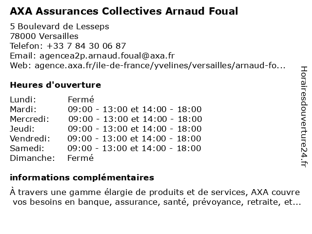 | Mardi | 09:00-13:00 et 14:00-18:00 |