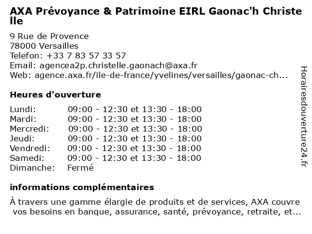 | Lundi | 09:00-12:30 et 13:30-18:00 |