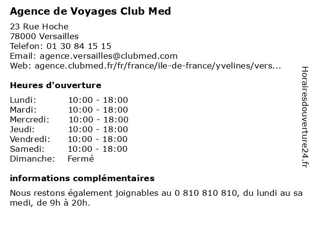 1 Agence de Voyages Club Med (Distance: 8,91 km) 174 Boulevard Jean Jaurès, 92100 Boulogne-Billancourt agence, agence de voyage, agence de voyages, circuit, circuits, club, club med, croisière, croisières, de, med, séjour, séjour tout compris, séjours, vacances, voyage, voyages 2 Agence de Voyages Club Med (Distance: 10,37 km) 60 Rue au Pain, 78100 Saint-Germain-en-Laye agence, agence de voyage, club, de, découverte, détente, med, séjour, vacances, voyages 3 Agence de Voyages Club Med (Distance: 11,18 km) 17 Rue du Général Leclerc, 92130 Issy-les-Moulineaux agence, agence de voyage, agence de voyages, circuit, circuits, club, de, med, séjour, séjour tout compris, séjours, vacances, voyage, voyages 4 Agence de Voyages Club Med (Distance: 12,62 km) 31 Rue Houdan, 92330 Sceaux agence, agence de voyage, agence de voyages, circuit, circuits, club, de, med, séjour, séjour tout compris, séjours, vacances, voyage, voyages 5 Agence de Voyages Club Med (Distance: 13,55 km) 12 Place du Marché, 92200 Neuilly-sur-Seine agence, agence de voyage, agence de voyages, circuit, circuits, club, de, med, séjour, séjour tout compris, séjours, vacances, voyage, voyages 6 Versailles Voyages (Distance: 0,20 km) 8 rue Rameau, 78000 Versailles séjours, tourisme, vacances, versailles, voyages, voyages sur-mesure |