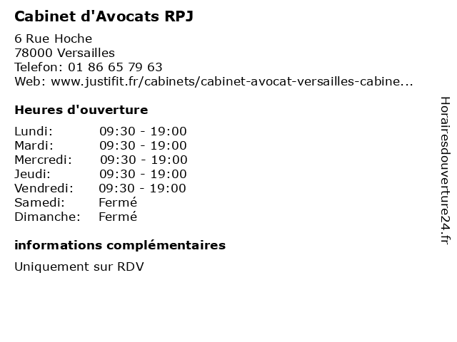1 Cabinet Courtaigne Avocats (Distance: 0,05 km) 4 place Hoche, 78000 Versailles avocat, avocats, cabinet, conseil, courtaigne, droit 2 Cabinet de Recrutement Manpower de Versailles (Distance: 0,15 km) 5 Place Hoche, 78000 Versailles agence de recrutement, agence pour l'emploi, cabinet, cabinet de recrutement, cdi, de, manpower, recrutement, versailles 3 Fidal - Cabinet d'avocats d'affaires (Distance: 0,18 km) 3 Rue de Marly, 78000 Versailles acquisitions, cabinet, corporate, d'affaires, d'avocats, droit de l'environnement, droit de la concurrence, droit des affaires, droit des technologies, expertise, fidal, formation, fusions 4 Cabinet Médical - Cardiologie (secrétariat ) (Distance: 0,75 km) 22 Rue De Lafayette, 78000 Versailles cabinet, cardiologie, consultation, docteur, générale, médecine, médical, santé, secrétariat 5 Cabinet Milivin (Distance: 1,87 km) 4 Avenue Rocquencourt, 78150 Le Chesnay-Rocquencourt cabinet, milivin 6 Cabinet d'avocats Primard - Becquet Associés (Distance: 12,82 km) 3 rue Conseil Europe, 91300 Massy associés, avocat, becquet, cabinet, conseil, d'avocats, droit, primard |