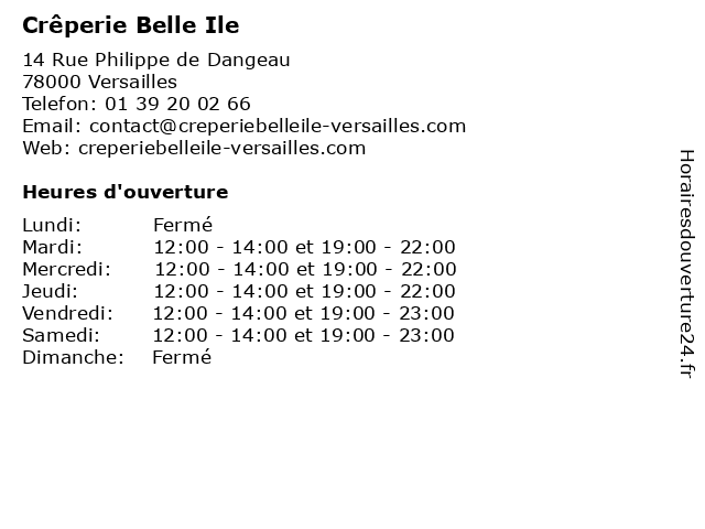 | Mardi | 12:00-14:00 et 19:00-22:00 |