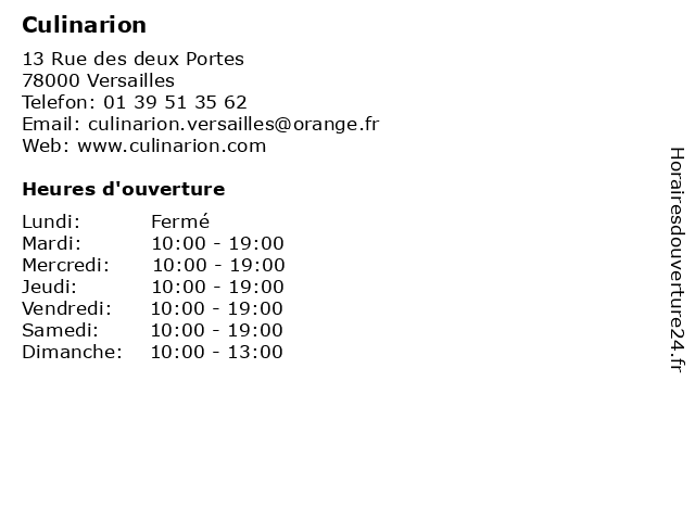 | Lundi | Fermé |
