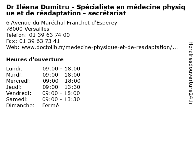 1 Dr Sophie Compere - Spécialiste en médecine physique et de réadaptation - secrétariat (Distance: 0,00 km) 6 Avenue du Maréchal Franchet d'Esperey, 78000 Versailles compere, consultation, de, docteur, dr, en, et, med, médecin, médecine, physique, réadaptation, secrétariat, sophie, spécialiste, traitement 2 Dr Laurence Mailhan - Spécialiste en médecine physique et de réadaptation - secrétariat (Distance: 0,00 km) 6 Avenue du Maréchal Franchet d'Esperey, 78000 Versailles consultation, de, docteur, dr, en, et, laurence, mailhan, med, médecin, médecine, physique, réadaptation, secrétariat, spécialiste, traitement 3 Dr Isabelle Monteil-Roch - Spécialiste en médecine physique et de réadaptation (Distance: 0,00 km) 6 Avenue du Maréchal Franchet d'Esperey, 78000 Versailles consultation, de, docteur, dr, en, et, isabelle, med, monteil, médecin, médecine, physique, roch, réadaptation, secrétariat, spécialiste, traitement 4 Dr Hélène Mercier - Spécialiste en médecine physique et de réadaptation (Distance: 0,00 km) 6 Avenue du Maréchal Franchet d'Esperey, 78000 Versailles consultation, de, docteur, dr, en, et, hélène, med, mercier, médecin, médecine, physique, réadaptation, secrétariat, spécialiste, traitement 5 Vélib - Station de Vélos en Libre-Service (Distance: 1,43 km) - Rue Exelmans, 78000 Versailles de, en, libre, service, station, stations, vélib, vélo, vélos, électrique 6 Université de Versailles Saint-Quentin-en-Yvelines (Distance: 2,23 km) 55 avenue de Paris, 78000 Versailles de, en, enseignement, ingénierie, médecine, politiques, quentin, saint, saint-quentin-en-yvelines, sciences sociales, siège, social, supérieur, technologie, université, versailles, yvelines, établissement |