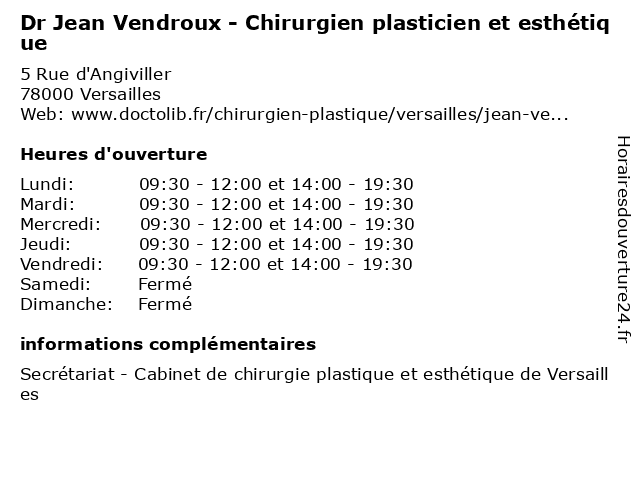 1 Dr Marc Serra - Chirurgien plasticien et esthétique (Distance: 0,00 km) 5 rue d'Angiviller, 78000 Versailles chirurgien, docteur, dr, esthétique, et, marc, plasticien, sante, serra, soins 2 Dr Calin Lazar - Chirurgien plasticien et esthétique (Distance: 0,72 km) 10 Rue André Chénier, 78000 Versailles calin, chirurgien, chiurgie, dr, esthétique, et, general, lazar, plasticien, soins 3 Dr Patrice Hilligot - Chirurgien plasticien et esthétique (Distance: 2,19 km) 21 rue Moxouris, 78150 Le Chesnay chirurgien, consultation, docteur, dr, esthétique, et, hilligot, med, médecin, médecine, patrice, plasticien, traitement 4 Dr François Lecointre - Chirurgien plasticien et esthétique (Distance: 2,19 km) 21 rue Moxouris, 78150 Le Chesnay chirurgien, consultation, docteur, dr, esthétique, et, françois, lecointre, med, médecin, médecine, plasticien, traitement 5 Dr Haude Chaussard - Chirurgien plasticien et esthétique (Distance: 4,51 km) 104 boulevard Raymond Poincaré, 92380 Garches chaussard, chirurgien, consultation, docteur, dr, esthétique, et, haude, med, médecin, médecine, plasticien, traitement 6 Medecin Catherine Jousset Levet (Chirurgien Plasticien) (Distance: 8,88 km) 13 Rue le Corbusier, 92100 Boulogne-Billancourt catherine, chirurgien, docteur, jousset, levet, medecin, plasticien, sante, services |