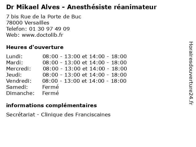 | Lundi | 08:00-13:00 et 14:00-18:00 |