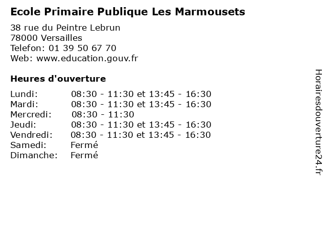 | Mardi | 08:30-11:30 et 13:45-16:30 |