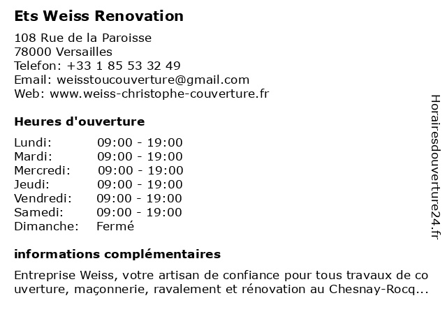 1 Laplaza Christophe (Distance: 1,13 km) 43 Boulevard Du Roi, 78000 Versailles christophe, laplaza, restaurants 3 Petit Couverture (Distance: 0,76 km) 6 bis Rue de la Paroisse, 78000 Versailles artisan, couverture, couvreur, installation, nettoyages, petit, toiture 5 Charly Couverture (Distance: 0,28 km) 25 rue du Maréchal Foch, 78000 Versailles charly, couverture, façade, ravalement, rénovation, toiture 6 JED Couverture (Distance: 2,45 km) 5 Rue Hippolyte Deslandes, 78150 Le Chesnay-Rocquencourt artisan, couverture, j.e.d, jed, nettoyage de, toiture |