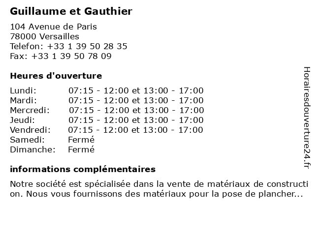 | Lundi | 07:15-12:00 et 13:00-17:00 |