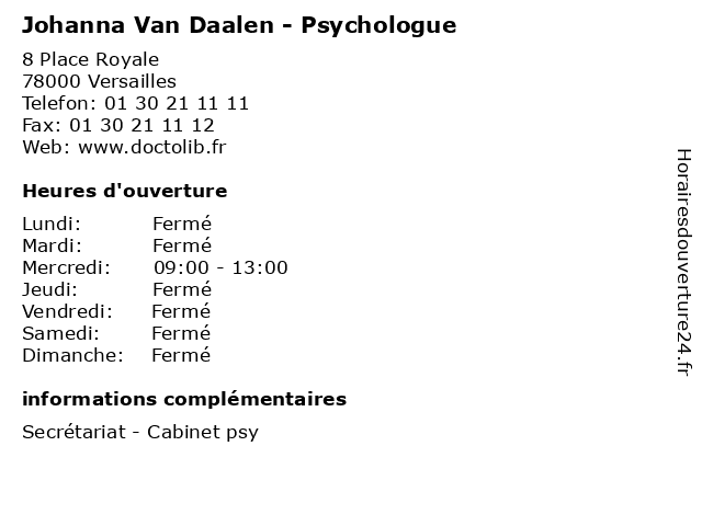 1 Clément Van Opstal - Masseur-kinésithérapeute (Distance: 0,29 km) 1 Rue de l'École des Postes, 78000 Versailles clément, kiné, kinésithérapeute, masseur, opstal, rééducation, soin, van 3 Maître France Valay-Van Lambaart - Avocate (Distance: 1,61 km) 52 Avenue de Saint Cloud, 78000 Versailles avocate, avocats, civils, droits, france, juridiques, lambaart, maître, valay, van 4 Dr Aurélien Le Van Tuong - Médecin généraliste (Distance: 1,84 km) 2 Rue Jean Houdon, 78000 Versailles aurélien, docteur, dr, generaliste, généraliste, le, medical, médecin, soin, tuong, van 5 Maître Johanna Ostrowka - Avocate (Distance: 1,94 km) 47 Rue du Maréchal Foch, 78000 Versailles avocate, avocats, civils, droits, johanna, juridiques, maître, ostrowka 6 Dr Louis-Dominique Van Egroo - Gynécologue - secrétariat (Distance: 6,10 km) 103 Rue Henri Barbusse, 92190 Meudon consultation, docteur, dominique, dr, egroo, gynécologue, louis, med, médecin, médecine, médical, secrétariat, traitement, van |