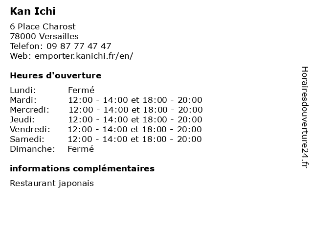 2 Ichi Bento (Distance: 17,08 km) 22 Boulevard De Sebastopol, 75004 Paris bento, hongtai, ichi, restaurants 3 Dr Jean-Baptiste Chong Kan - Orthodontiste (Distance: 18,23 km) 124 bis Boulevard de Magenta, 75010 Paris baptiste, chong, consultation, docteur, dr, jean, kan, med, médecin, orthodontiste, traitement 4 Restaurant Kan Du (Distance: 20,12 km) 10 Rue De Bagnolet, 75020 Paris chen, chinois, du, jianwei, kan, restaurant, restaurants, wang, wok 5 Konapoke (Distance: 0,04 km) 2 Rue Georges Clemenceau, 78000 Versailles boissons, bowl, konapoke, menus, poke, restaurant 6 Café Marion (Distance: 0,07 km) 3 Rue Georges Clemenceau, 78000 Versailles bar, bistrot, brasserie, café, cuisine, marion, restaurant, restauration |