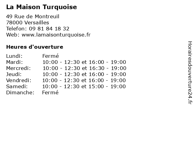 | Samedi | 10:00-12:30 et 15:00-19:00 |