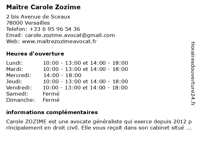 | Lundi | 10:00-13:00 et 14:00-18:00 |