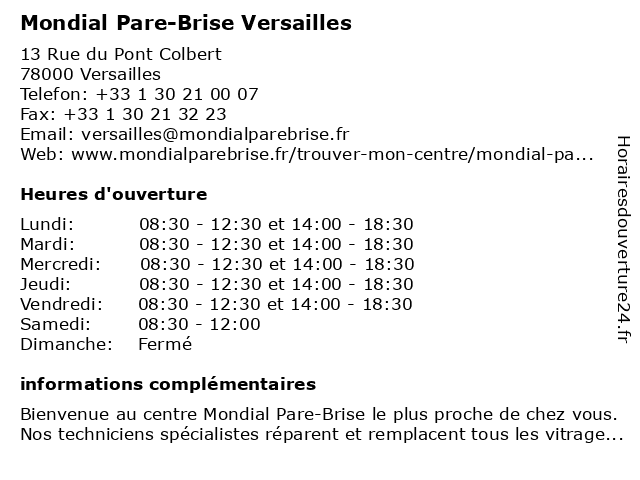 | Mardi | 08:30-12:30 et 14:00-18:30 |