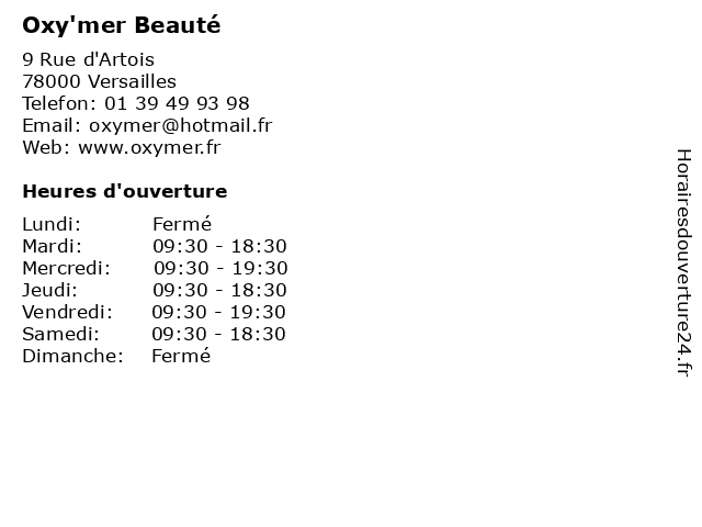 | Mercredi | 09:30-19:30 |