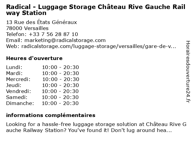 Termes de recherche pour Radical - Luggage Storage Château Rive Gauche Railway Station:chateau, rive, station, gauche, radical, luggage, storage, railway, luggage storage, luggage storage near me |