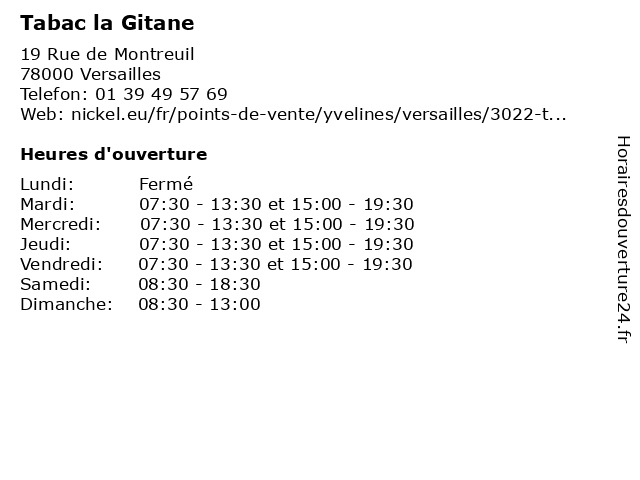 | Mardi | 07:30-13:30 et 15:00-19:30 |