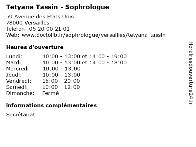 | Lundi | 10:00-13:00 et 14:00-19:00 |