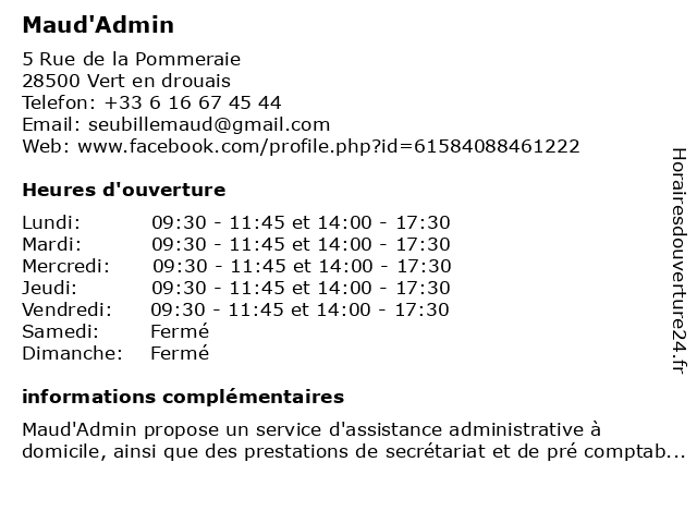| Lundi | 09:30-11:45 et 14:00-17:30 |