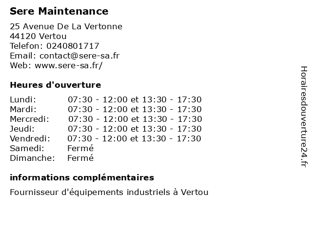 | Lundi | 07:30-12:00 et 13:30-17:30 |
