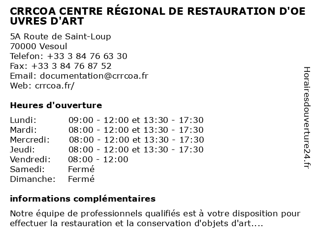 | Mercredi | 08:00-12:00 et 13:30-17:30 |