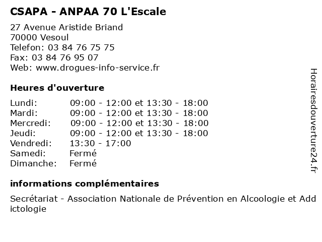 Termes de recherche pour CSAPA - ANPAA 70 L'Escale:nationale, l'escale, secretariat, prévention, association, 70, addictologie, alcoologie, csapa, anpaa |