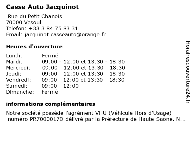1 Pharmacie Jacquinot (Distance: 28,12 km) 19 Rue de l'Hôtel de ville, 70500 Jussey jacquinot, pharmacie 2 J3A Auto (Distance: 29,30 km) 38 Rue des Vosges, 70200 Saint-Germain auto, automobile, casse, demolition, du, indra, j3a, pièce, recyclage, voiture, véhicule 3 Auto Casse 25 (Distance: 44,75 km) 9 Rue de la Filature, 25260 Colombier-Fontaine 25, auto, automobile, casse, indra, pièce, recyclage, voiture, véhicule 5 Stock Casse 70 (Distance: 49,77 km) - Route Nationnale 83, 70400 Brevilliers 70, casse, magasins, occasions, pièces détachées, stock, voiture 6 |