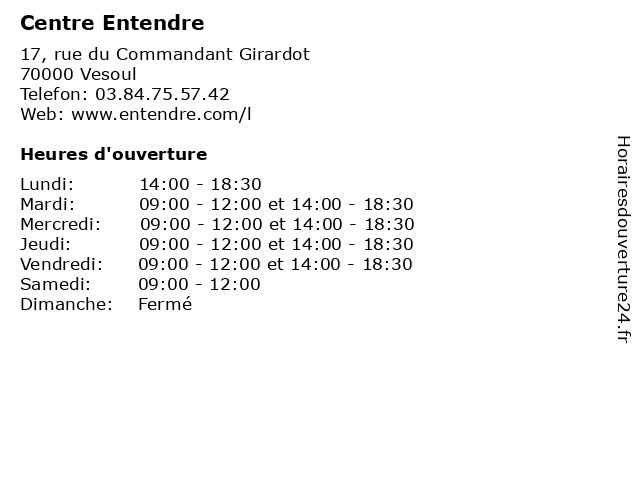 | Mardi | 09:00-12:00 et 14:00-18:30 |