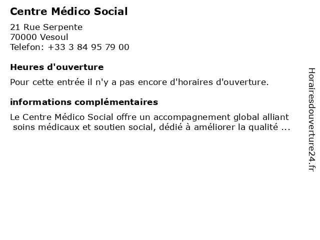 | Appeler Centre Médico Social | |