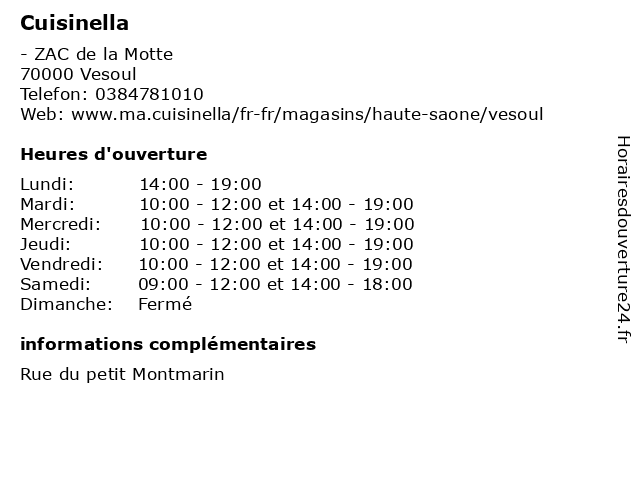 | Mardi | 10:00-12:00 et 14:00-19:00 |