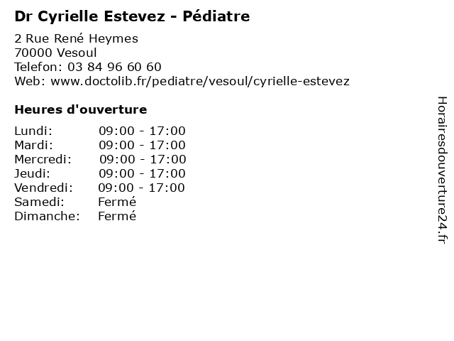 1 Dr Monica Boldor - Pédiatre (Distance: 0,00 km) 2 Rue René Heymes, 70000 Vesoul boldor, consultation, docteur, dr, med, monica, médecin, pédiatre, traitement 2 Dr Laure Coudert - Pédiatre (Distance: 0,00 km) 2 Rue René Heymes, 70000 Vesoul consultation, coudert, docteur, dr, laure, med, médecin, pédiatre, traitement 3 Dr Naghmeh Haghiri - Pédiatre (Distance: 0,00 km) 2 Rue René Heymes, 70000 Vesoul consultation, docteur, dr, haghiri, med, médecin, naghmeh, pédiatre, traitement 4 Dr Caroline Pechin Barrande - Pédiatre (Distance: 0,00 km) 2 Rue René Heymes, 70000 Vesoul barrande, caroline, consultation, docteur, dr, med, médecin, pechin, pédiatre, traitement 5 Dr Moheb Taghian - Pédiatre (Distance: 0,00 km) 2 Rue René Heymes, 70000 Vesoul consultation, docteur, dr, med, moheb, médecin, pédiatre, taghian, traitement 6 Dr Mathilde Vautrin - Pédiatre (Distance: 0,00 km) 2 Rue René Heymes, 70000 Vesoul consultation, docteur, dr, mathilde, med, médecin, pédiatre, traitement, vautrin |
