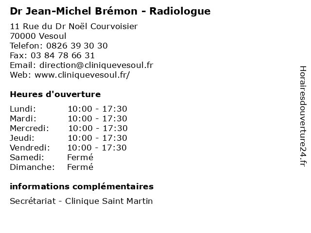 | Lundi | 10:00-17:30 |