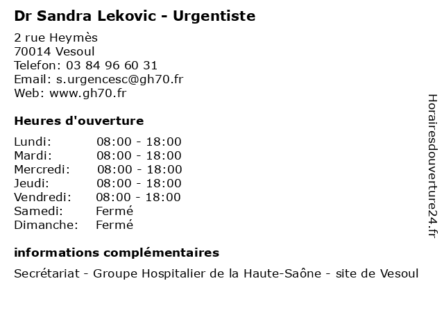 Termes de recherche pour Dr Sandra Lekovic - Urgentiste:la, de, saone, vesoul, groupe, soins, urgence, haute, site, hospitalier, médecin, dr, sandra, urgentiste, lekovic |