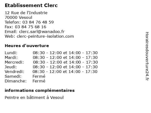 | Lundi | 08:30-12:00 et 14:00-17:30 |