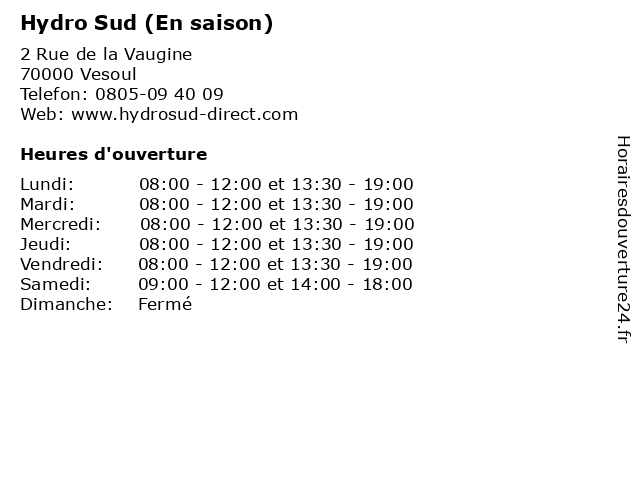 | Mercredi | 08:00-12:00 et 13:30-19:00 |
