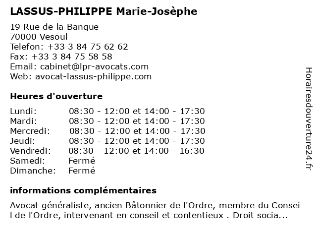 | Lundi | 08:30-12:00 et 14:00-17:30 |