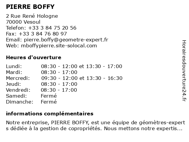| Lundi | 08:30-12:00 et 13:30-17:00 |
