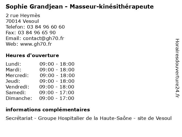 1 Sophie Thevenot - Sage-femme (Distance: 0,00 km) 2 rue Heymès, 70014 Vesoul consultation, docteur, femme, med, medecine, medical, médecin, sage, sophie, thevenot, traitement 2 Sophie Gallinet - Psychomotricienne (Distance: 0,11 km) 2 Rue René Heymes, 70000 Vesoul consultation, docteur, gallinet, med, médecin, psychomotricienne, sophie, traitement 3 Sophie Revillard - Infirmière (Distance: 0,11 km) 2 Rue René Heymes, 70000 Vesoul consultation, docteur, infirmière, med, médecin, revillard, sophie, traitement 4 Dr Sophie Duchezeau - Urgentiste (Distance: 0,14 km) 2 rue Heymès, 70014 Vesoul de, dr, duchezeau, groupe, haute, hospitalier, la, medecin, saône, site, soins, sophie, urgence, urgentiste, vesoul 5 Dr Sophie Bourscheid Caron - Gériatre (Distance: 0,14 km) 2 rue Heymès, 70014 Vesoul age, bourscheid, caron, de, dr, fragilee, geriatrie, geriatrique, groupe, gériatre, haute, hospitalier, la, saône, site, sophie, vesoul 6 Dr Sophie Audouard - Rhumatologue (Distance: 0,35 km) 10 Rue du Docteur Noël Courvoisier, 70000 Vesoul audouard, dr, rhumatisme, rhumatologue, sante, soins, sophie |