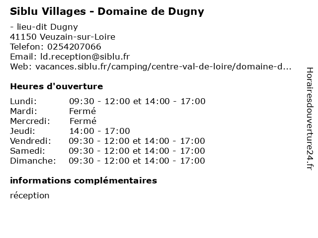 | Dimanche | 09:30-12:00 et 14:00-17:00 |