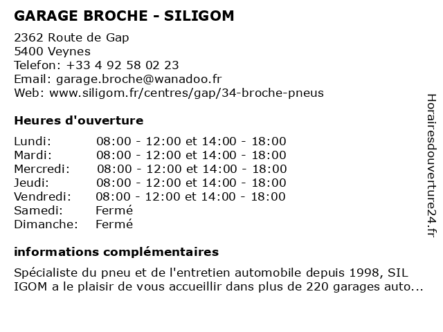 2 Euromaster Barneaud Pneus - Gap (Distance: 16,16 km) 15 Route de St Jean, 05000 GAP barneaud, batterie voiture, centre auto, essuie glace, euromaster, gap, garage, garage auto, garage automobile, garagiste, liquide de frein, parallélisme, plaquette de frein, pneu, pneu 4 saisons, pneu hiver, pneu michelin, pneu pas cher, pneus, pneus pas cher, pneus pas chers, pression pneu, promo pneu, recharge clim voiture, revision voiture, vidange, vidange voiture 3 Vulco - Azur Trucks Pneus (Distance: 16,28 km) - La Plaine de Lachaud, 05000 Gap automobile, azur, entretien, garages, pneus, réparation, trucks, vulco 4 Dr Isabelle Tashan-Broche - Médecin généraliste (Distance: 18,07 km) 1 Place Auguste Muret, 05007 Gap broche, consultation, docteur, dr, généraliste, isabelle, med, médecin, médecine, tashan, traitement 5 Feu Vert Services (Distance: 35,16 km) Autoroute du Val de Durance, 04200 Sisteron amortisseurs, ampoule, autoradio, batterie, chaussettes neige, chaînes neige, coffre de toit, feu, freinage, glacière, pneu, pneu 4 saisons, pneu hiver, remorque, révision, services, vert, vidange 6 SILIGOM - D SERVICES (Distance: 39,74 km) 5 Avenue de la Libération, 04200 Sisteron contrôle technique sisteron, entretien automobile sisteron, garage automobile sisteron, pneus 4 saisons sisteron, pneus hiver sisteron, pneus moto sisteron, pneus pas chers sisteron, promotion pneus sisteron, révision voiture sisteron, services, siligom, vidange voiture sisteron |
